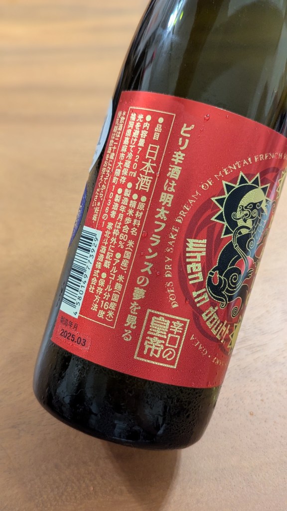 絕對會是辛口派見獵心喜的一款作品!酒標看起來也很派,原來是桃太郎故事裡偷偷逃走的二隻惡鬼跑到福岡了啦。是日本酒的鬼殺系列的其中一種,鬼殺酒指的是「連鬼都會逃跑、甚至是能擊敗鬼的辛辣酒」,辛口的皇帝這不就來了。