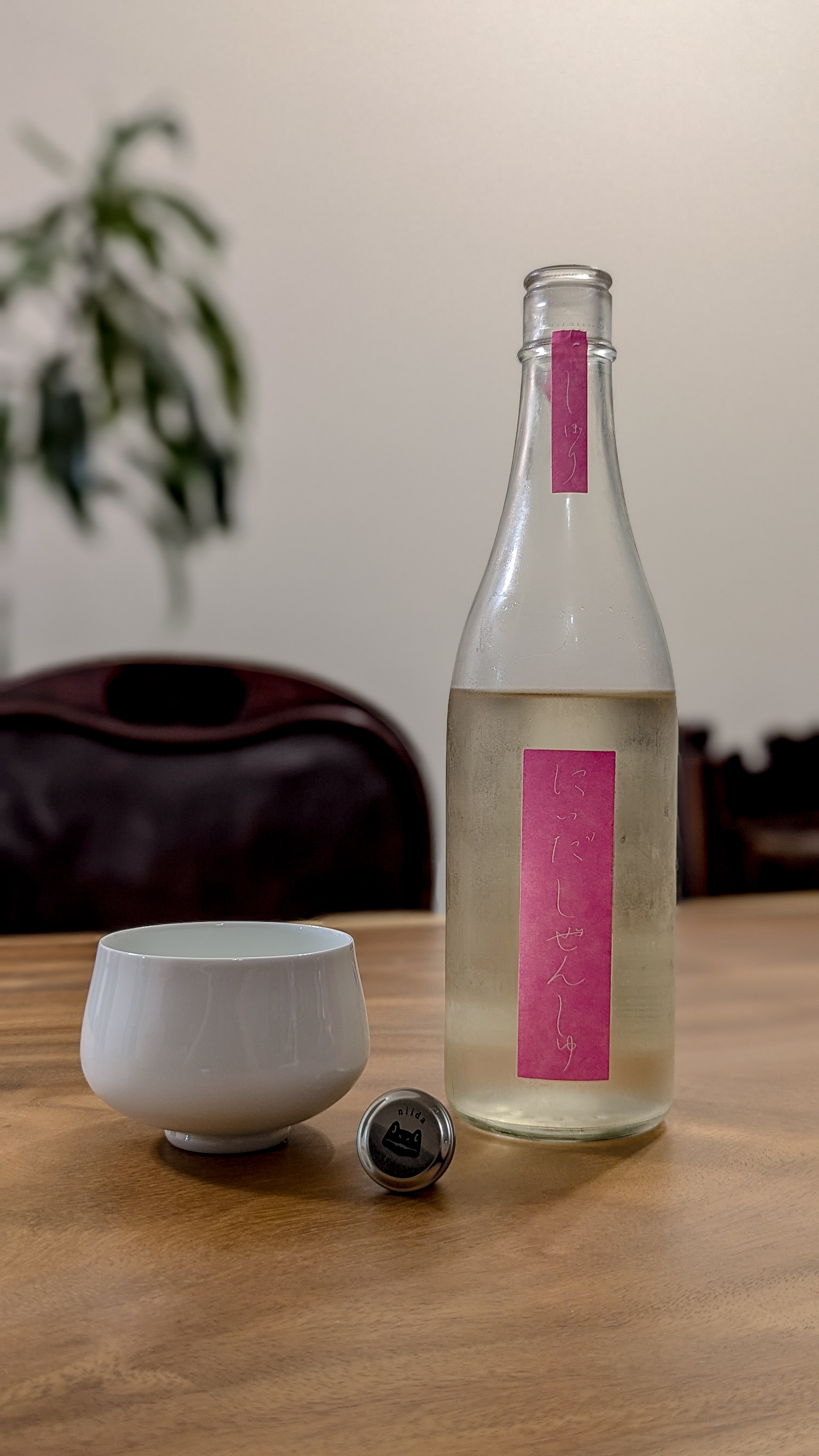 酒瓶為清澈的透明玻璃瓶身,立即能看見酒質雖然清澈,仔細對光能發現帶著輕微、幾乎難以察覺的朦朧感。推論可能採用最低限度過濾,同時色澤呈淡雅的色調,隱含著淡淡的稻草黃或微綠色澤,展現其自然純粹的本質。