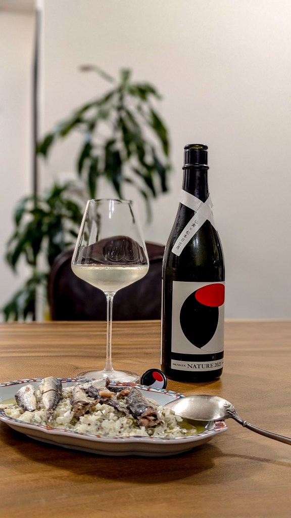 一直很喜歡以entrée和清酒搭配,這支酒與煙燻沙丁魚佐香檳醋沙拉的組合,展現出卓越的風味契合度。清爽酸度能有效平衡煙燻沙丁魚的豐腴油脂,達到解膩效果。松本日出彥追求的「薄旨」理念 ,使得酒體雖醇厚卻不失易飲性 ,確保其濃郁度與油漬魚風味相得益彰。