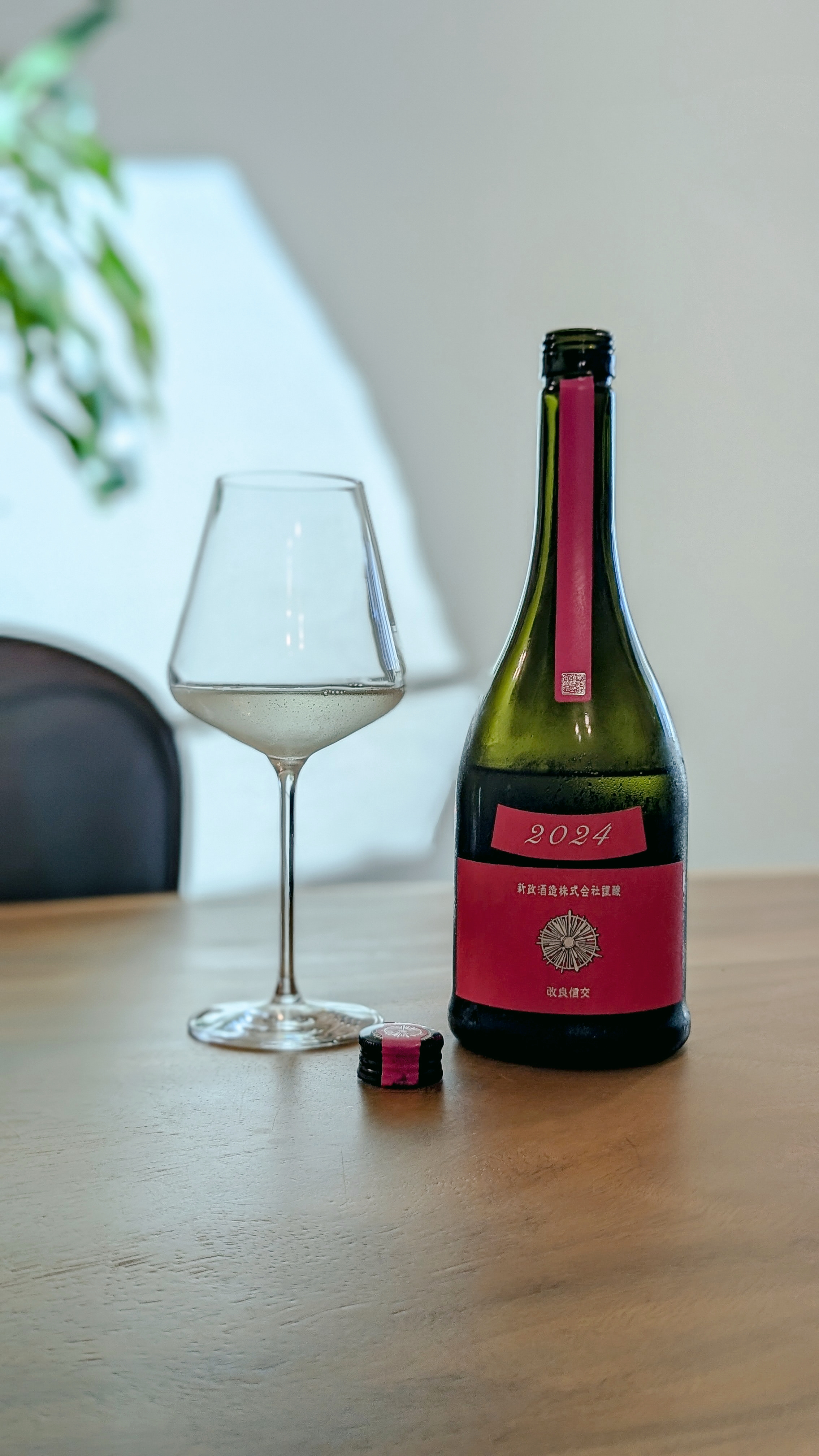 入口的瞬間,最先感受到的是新政標誌性的、清澈而富有活力的酸度。這股酸度如絲線般貫穿始終,讓酒體顯得輕快而不凝重。中段,酒米特有的蒸米香氣開始擴散,口感紮實,帶有穀物般的甘甜與些微礦物感,層次豐富。完整陪伴的優雅酸度為品飲增添了清新與活力。